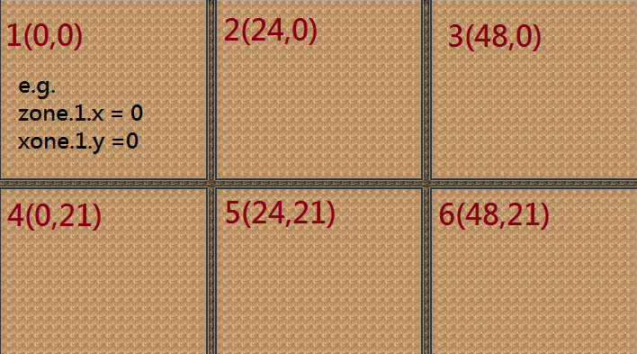 比如區域1的地圖開始在座標(0,0) 你應該如下設定變數: