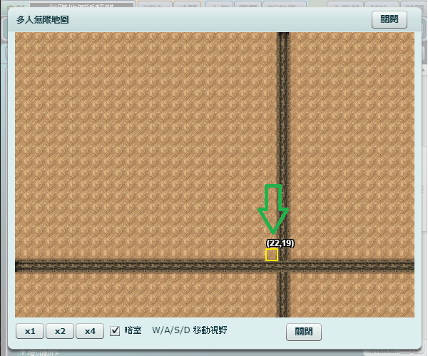 建立其他地圖也是一樣,在說話框輸入 x_(數字) Enter 再輸入y_(數字) Enter,然後按下L。