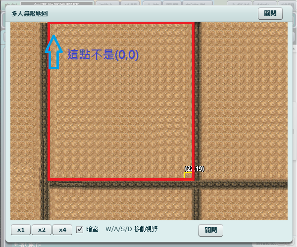 首先必要介紹這個無限地圖的概念,這個無限地圖會用 (x,y) 去定義地圖的代號,比如我建了一張地圖,這地圖代號是(0,0)。
